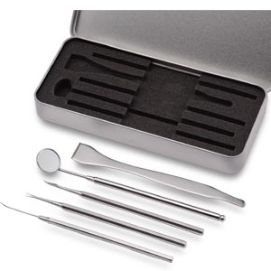 岐阜県関市は鋭い切れ味、高い芸術性に定評がある日本刀の鍛錬法を今に受け継ぐ「刃物の都」として知られています。その関の伝統技術を結集して作り上げたのが、このデンタルツール5点セット。ステンレス鋼を丹念に打ち上げて仕上げられた先端は鋭く、歯の表面にこびりついたヤニから、歯ブラシでは届きにくい隙間の歯垢まで除去します。また、舌みがきで舌の汚れや舌苔を落として口臭予防にも。さすがは関と納得できる、家庭用デンタルケアセットです。 5,250円